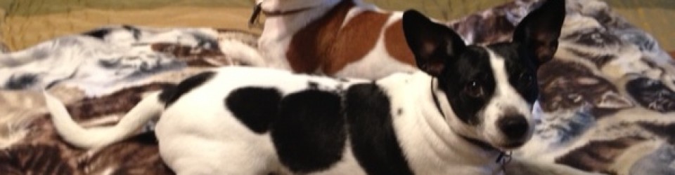 We adopted our little Rat Terrier, Tanner, in November 2010. After our daughter moved on her own, taking our precious granddog with her, we searched the ITV website for another Rat Terrier. We lucked out when we found Tanner! Not only does he get along great with our 3 cats, but he also loves when our granddog comes over to visit for a couple of days each week! Tanner is actually my first dog ownership, and I couldn’t have asked for a better dog! Here is a picture of Tanner with our granddog, Tucker, waiting for our covers to be turned back for bedtime. Tanner is the black & white dog in the front. Thank you ITV for making this all possible!