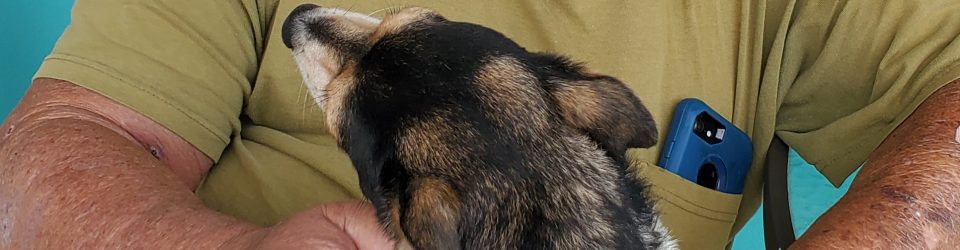 My dad decided he needed a dog – a little one that would keep him company while he watches TV everyday. Well, we went to ITV and found this little wonder! He crawled right up into Dad’s lap! That was all it took! We do not know much about him other than he doesn’t run off, he likes to play fetch – but not too long – his favorite thing to do is sleep 😀 we love him! He is the perfect match!