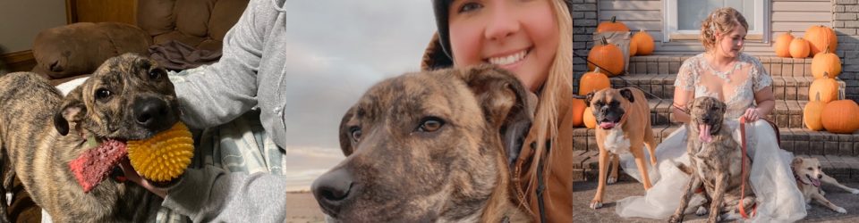Back in April 2021, I seen that Buckley was ready to be fostered. As soon as I seen him I knew I had to have him. Once we brought him home there was no other choice except to adopt him. He stole our hearts immediately. Yeah, we are a foster failure and we wouldn’t change it for the world. Buckley loves playing with his brother and sister, being outside, destroying all the dog toys, cuddling with his moms, and making sure that his dad doesn’t get too close to his mommy. From the beginning, Buckley became very attached to me and that bond continues to grow. We didn’t know it then, but Buckley was exactly what our family needed. March 12th he will turn 1 and it’s crazy to think we have already had him almost a year!